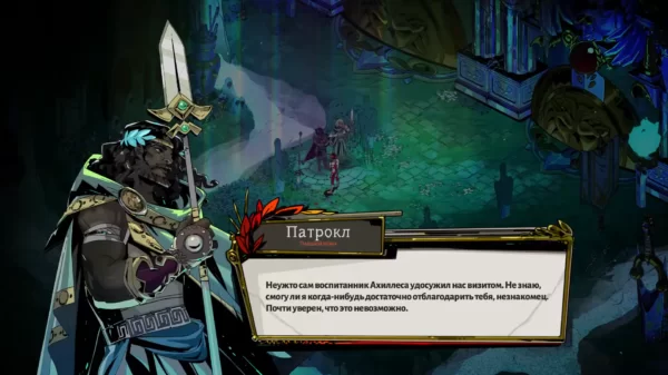 Позднее, когда мы снова продвинемся в симпатии с обоими героями, Патрокл попросит Загрея передать сообщение Ахиллесу, в котором «… просит рискнуть всем».