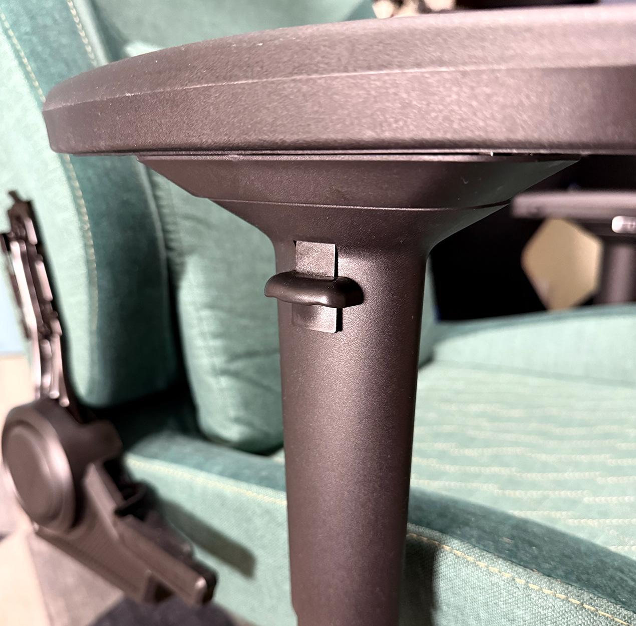 Я пытался их и аккуратно поставить, и сильно прижать, и яростно втараканить на свое законное место, но никакой из этих вариантов не сработал. Возможно, стоит расценивать эту фичу как поклон, когда царь во дворца, но скорее всего пластиковые крепления не могут как следует зацепиться за паз. И это первый недостаток. Второй недостаток более специфичный: когда, сидя в кресле, кручусь из стороны в сторону – слышен слабый скрип. Видимо газлифт трется об кожух или блок регулировок. Скрип тихий, не надоедающий и появляется только если кручусь медленно. Сначала я предположил, что монаршая особа таким образом намекает на избыток пирожков в моем организме, но кресло рассчитано на вес до 200 кг, а до этого числа мне еще долго булки жевать. Оставшаяся половинка недостатка относится к рычагу регулировки высоты подлокотников. Дело в том, что под этим самым рычагом видно пластиковый лепесток, который, как мне кажется, должен находится внутри корпуса подлокотника. Но я в этом не уверен, потому и не могу сказать, что это 100% недостаток. Изучив множество фотоотзывов на маркетплейсах я могу с полной уверенностью сказать, что все еще не понимаю как должно быть, так как на фото у одних он снаружи, а у других внутри.