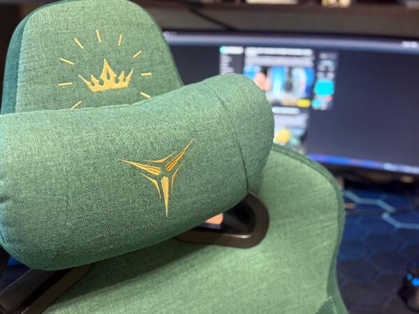 После распаковки и сборки кресла MONARCH X-Weave я понял две вещи. Во-первых, выглядит оно прям дорого-богато. Плотная ткань обивки приятного изумрудного цвета с золотой вышивкой на изголовье, да еще и на золотом основании. Все материалы тактильно приятны и ощущаются качественными. А во-вторых, оно монументально тяжелое. Весит этот монарх без малого 30 кг. И кайф тяжелого кресла я ощутил сразу же, ведь как бы я не крутился в нем, в какую бы позу креветки не выворачивался – трон уверенно стоит на месте и не пытается укатиться в неизвестном направлении, как мое старое. В устойчивости кресла есть и заслуга колес с прорезиненной поверхностью, но все мы знаем, что тяжесть ой как важна. Ведь тяжесть – это надежно.