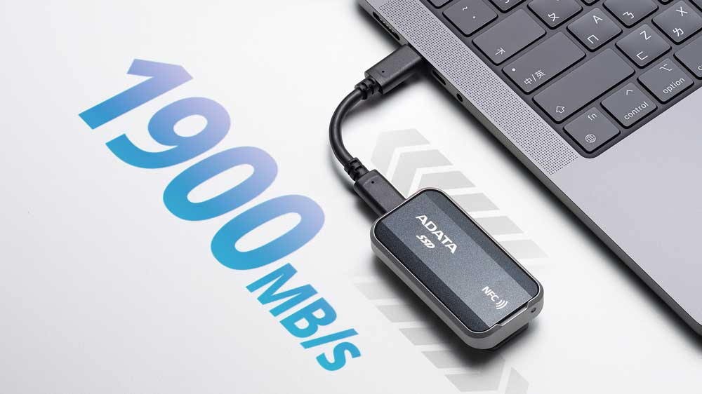 Главной фишкой нового твердотельного накопителя является возможность разблокировки доступа к информации на нём при помощи смартфона с NFC, которого нужно положить рядом.