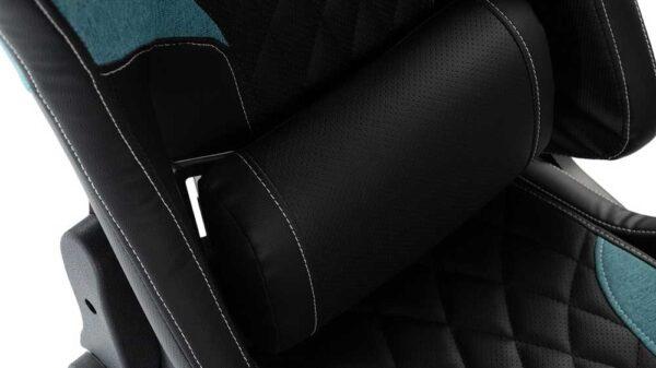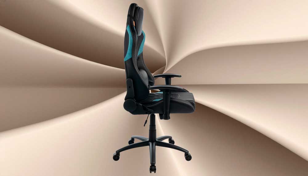 Модель ориентирована на бюджетный сегмент. Обивка изготовлена из экокожи и дополнена вставками из перфорированной ткани, а цветовое решение сочетает черный и бирюзовый оттенки. Конструкция обеспечивает несколько видов регулировок. Спинка может отклоняться в широком диапазоне, также доступен механизм качания. Высоту сиденья и положение подлокотников можно менять в соответствии с предпочтениями пользователя. Дополнительные элементы комфорта включают подголовник и поясничную подушку. За прочность кресла отвечает металлический каркас, газлифт третьего класса и колеса из пластика. Модель рассчитана на пользователей весом до 150 килограммов. Ценник на кресло стартует с 13 тысяч рублей.